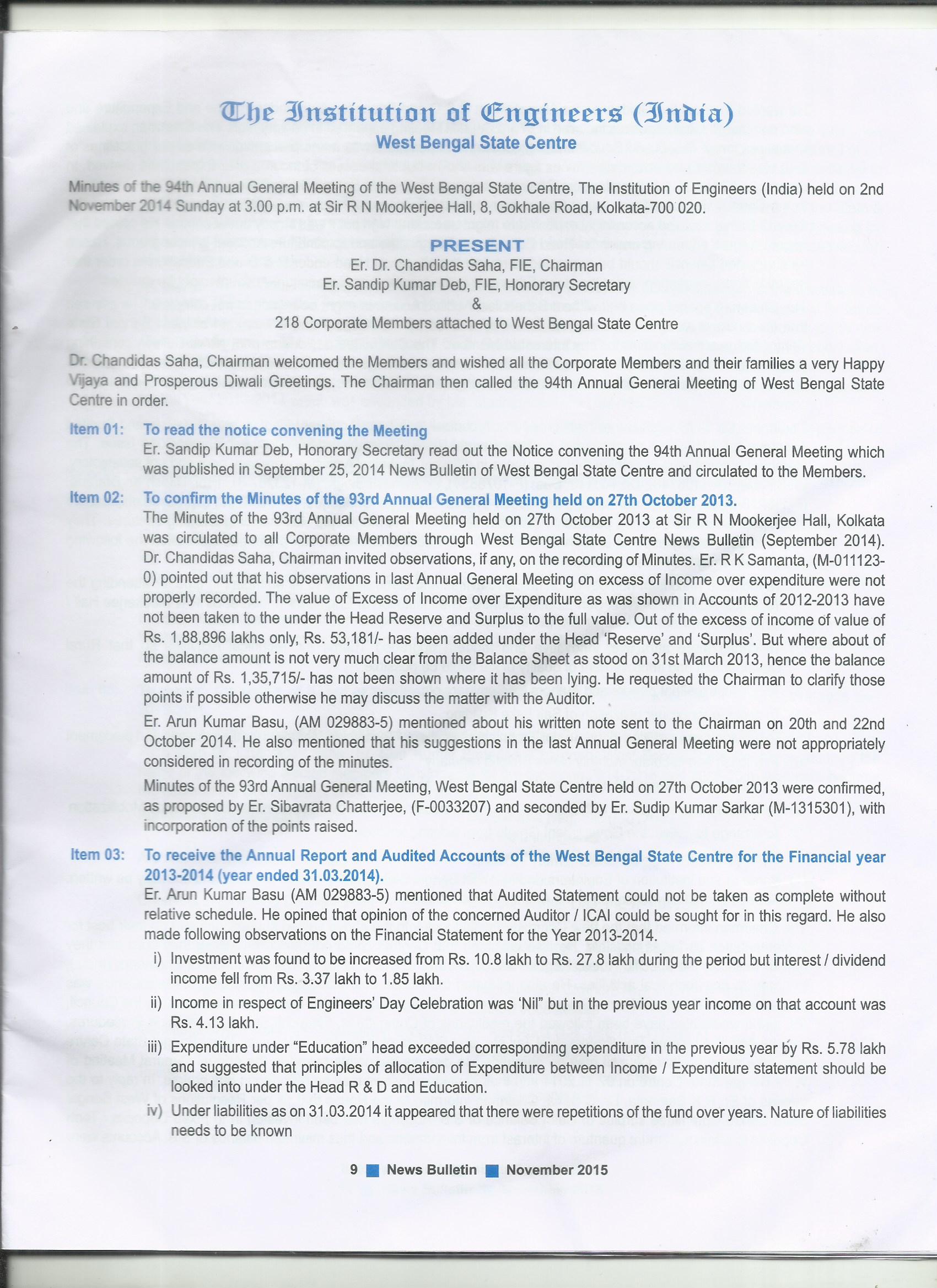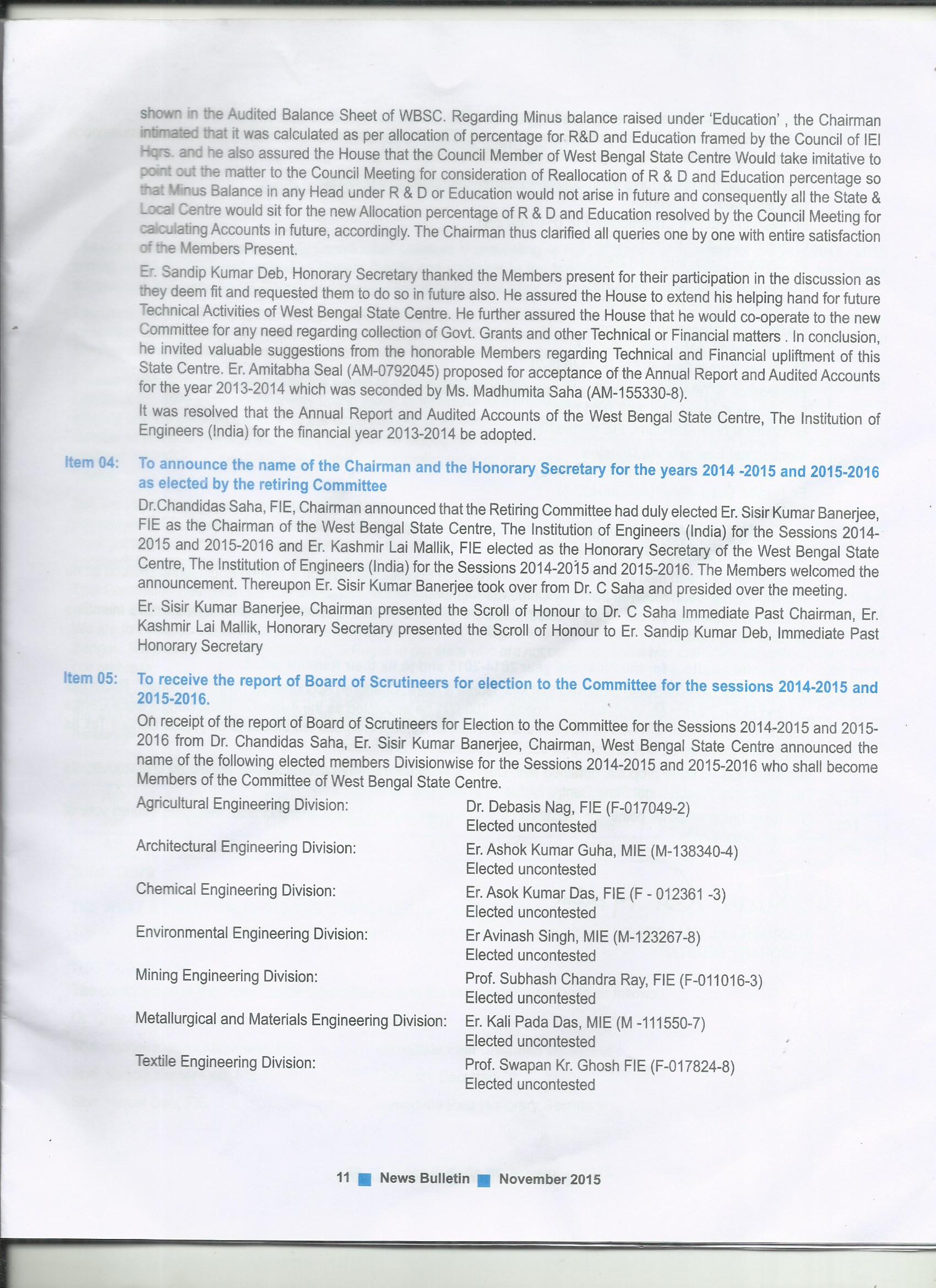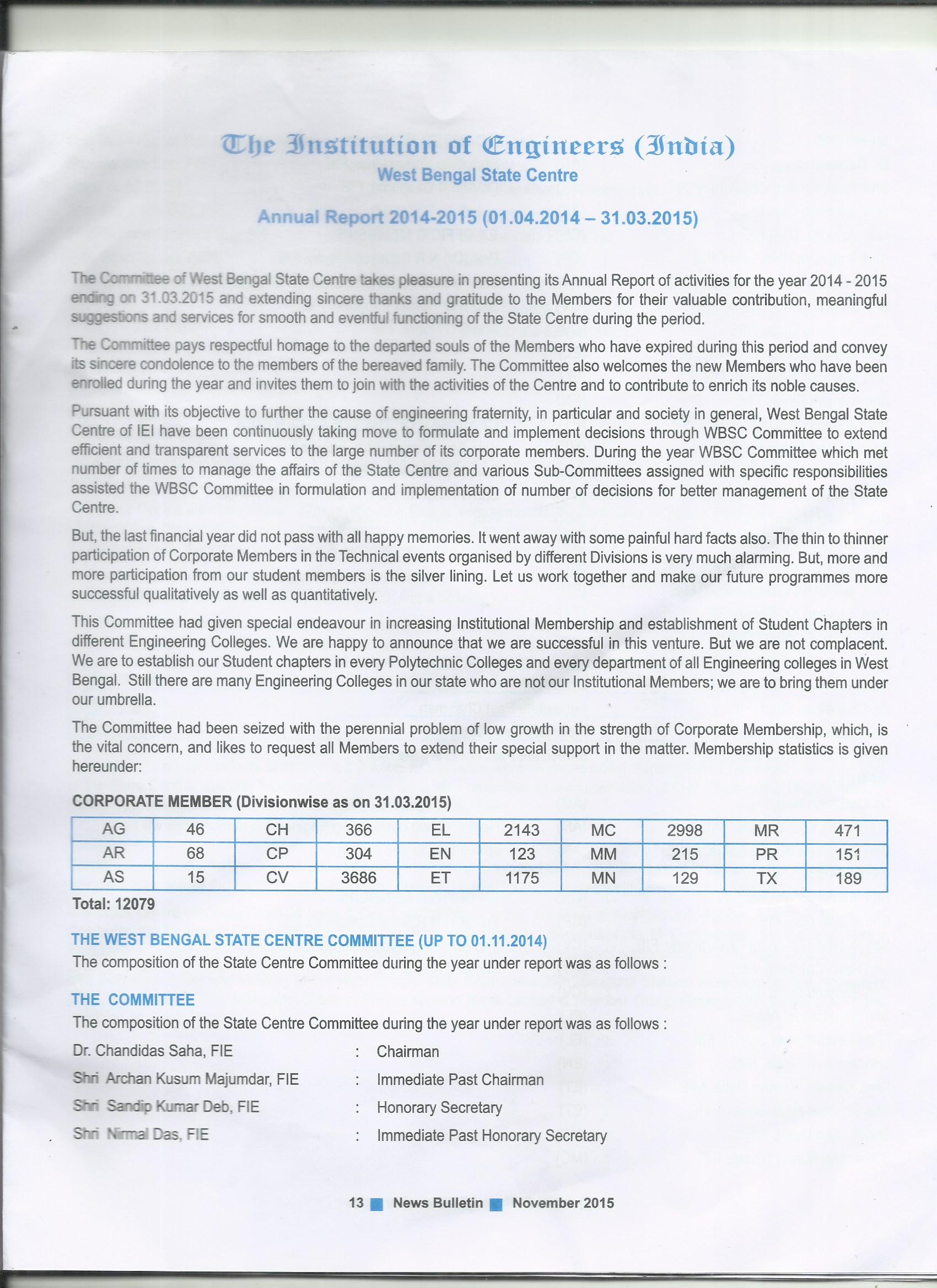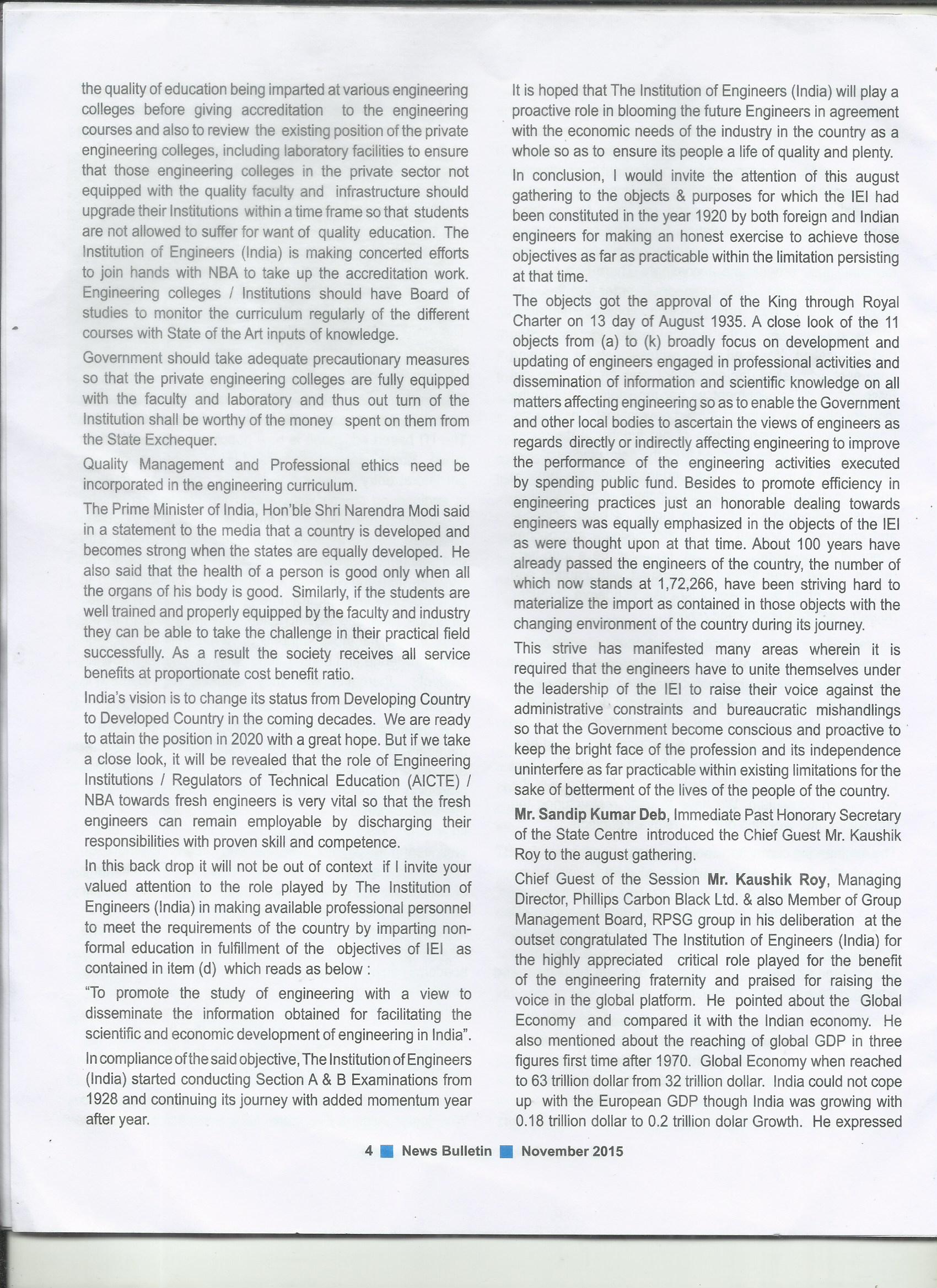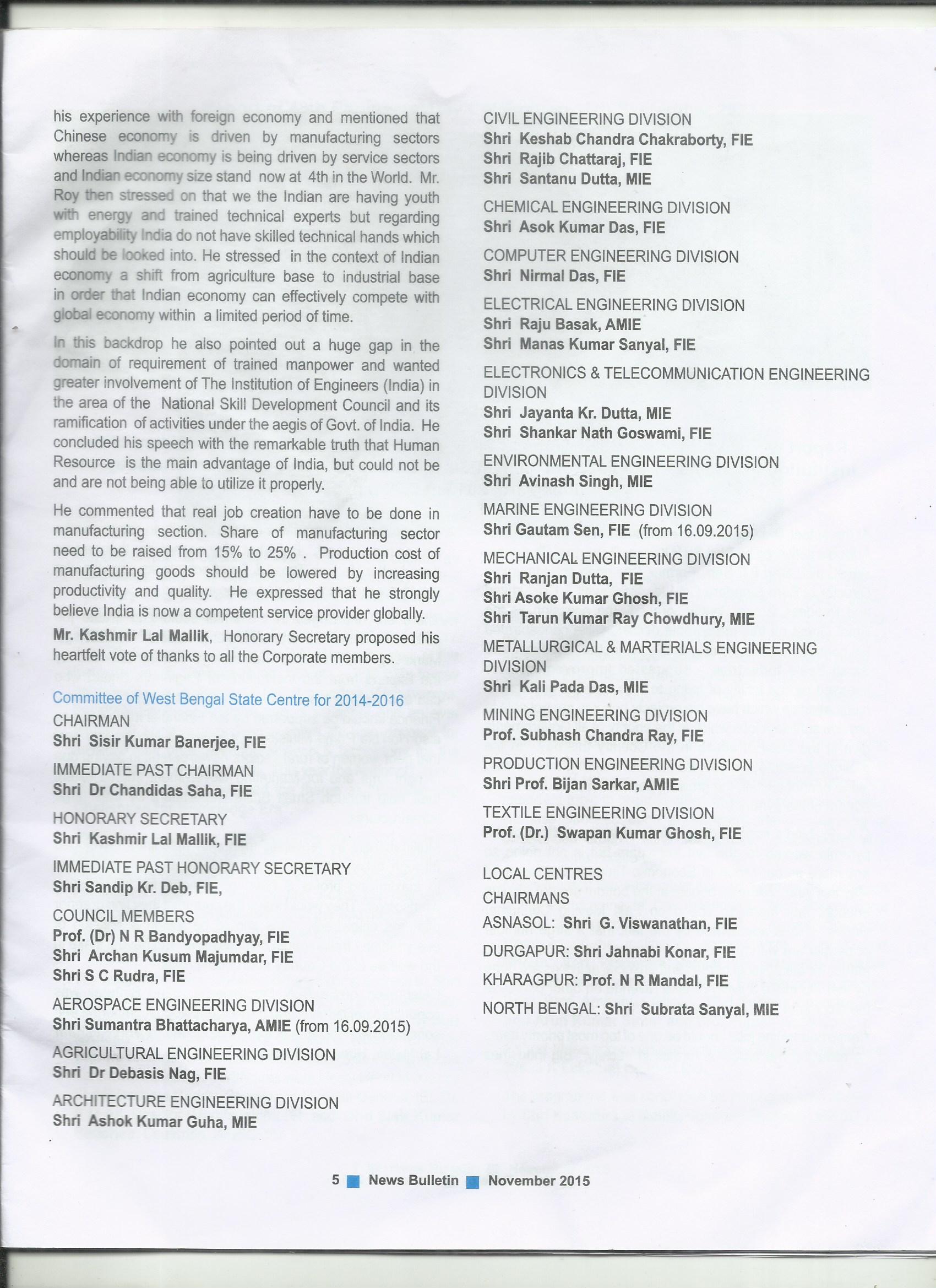 NEWS BULLETIN ( West Bengal State Centre ) November 2015