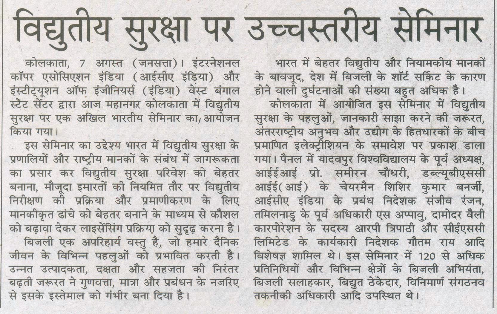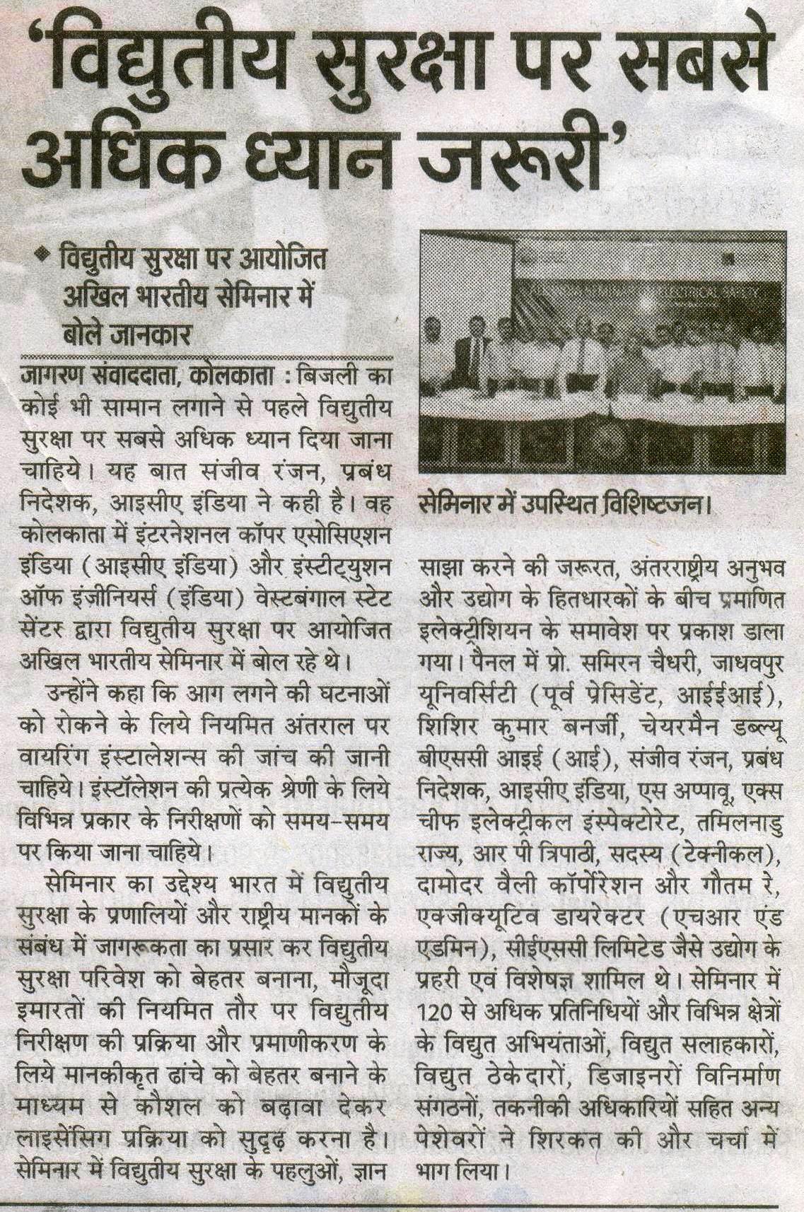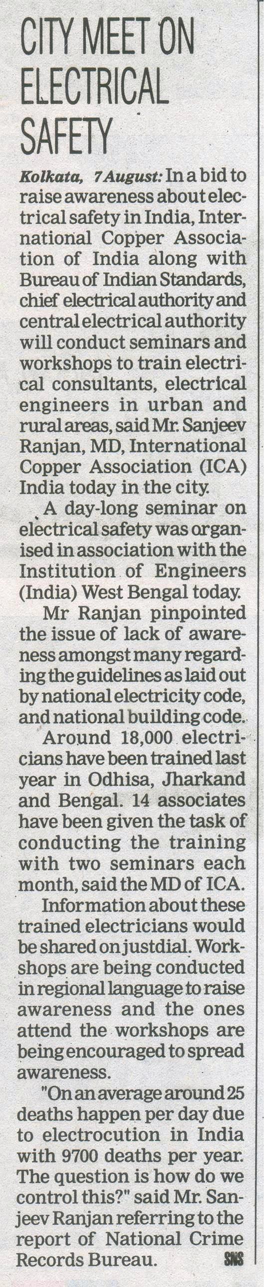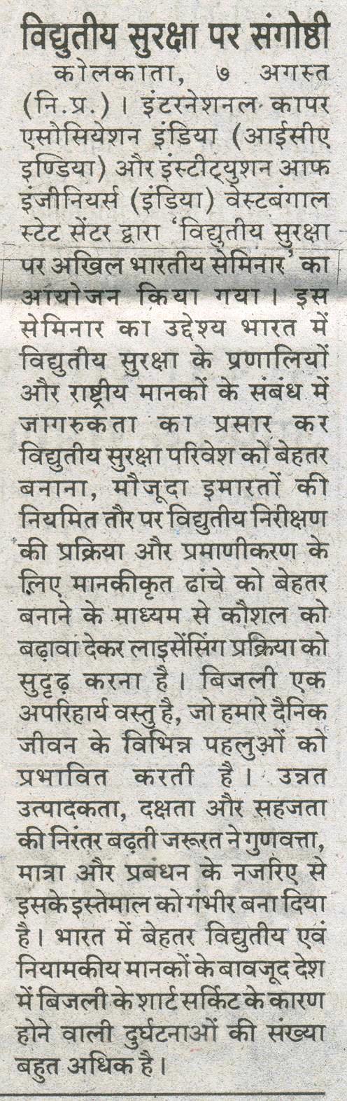 Publication indiainfoline.com 8th Aug 2015 Hindustan Times Page No. 2, 8 august 2015 The Statesman (Kolkataplus) Page No. 15, 8 august 2015 Dainik Bishwamitra Page No. 6, 8 august 2015. Jansatta Page No. 2, 8 august 2015 Prabhat Khabar Page No. 4, 8 august 2015 Dainik Jargan Page No. 2, 10 august 2015 Salam Duniya Page No.5, 8 august 2015 Published Paper COMPETENCE MANAGEMENT SYSTEM ON SAFETY ASPECT Paper on Electrical safety_roybarman